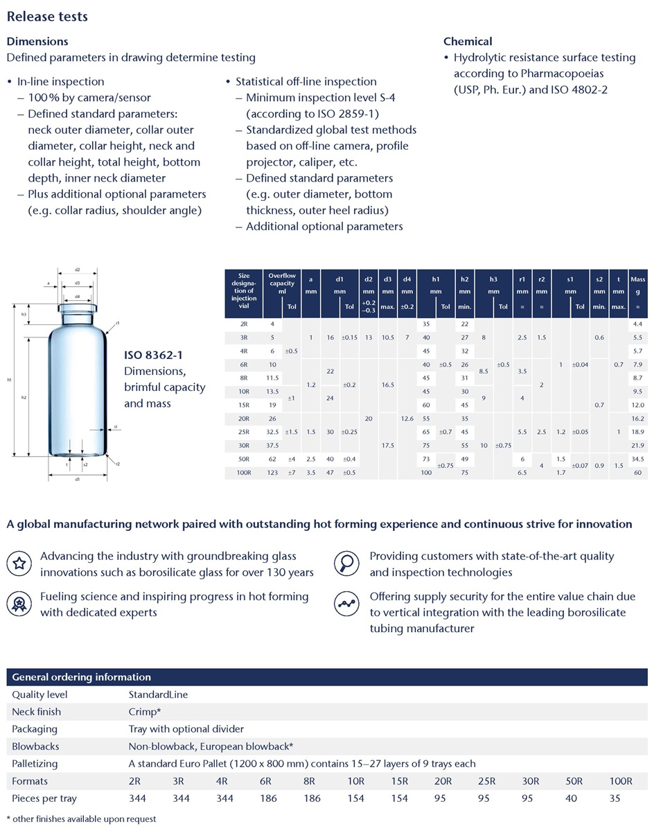 1. hydrolytische Klasse Fiolax® – Klarglas und Braunglas